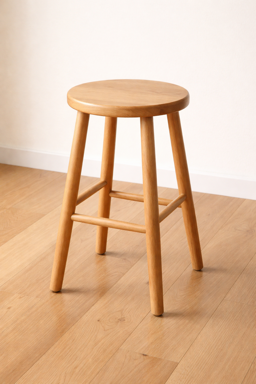 A simple wooden stool for upright sitting and quick posture resets between sessions.